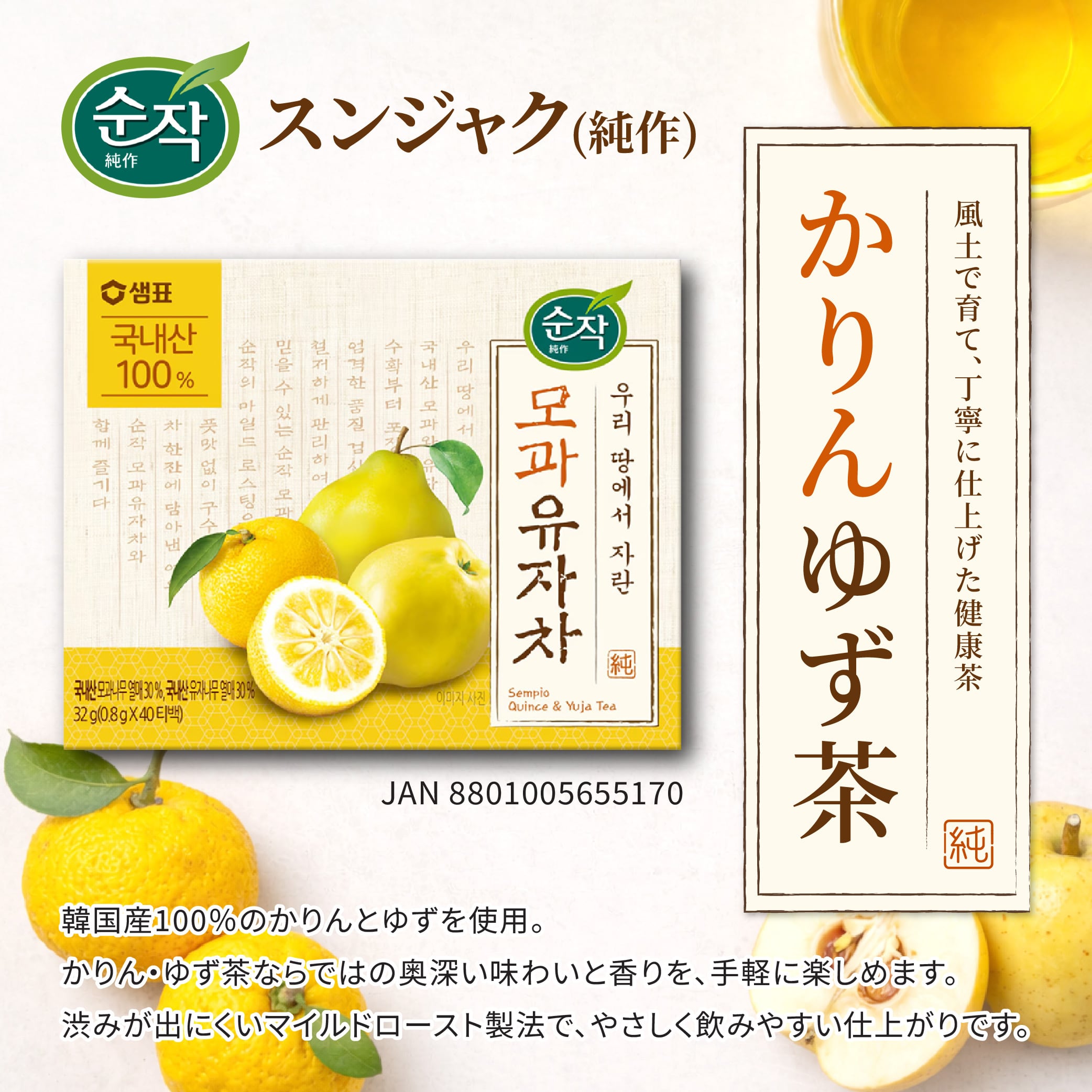 センピョ かりん柚子茶 40包入 / Sempio 純作 柚子かりん茶 韓国お茶 ティーバック セムピョ 水だし 煮だし